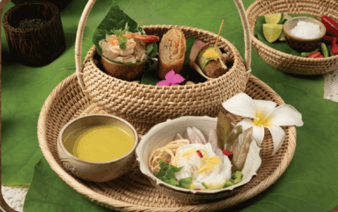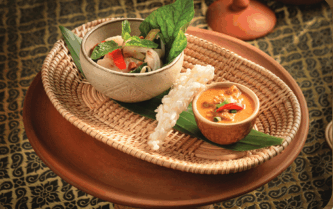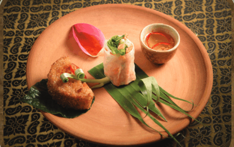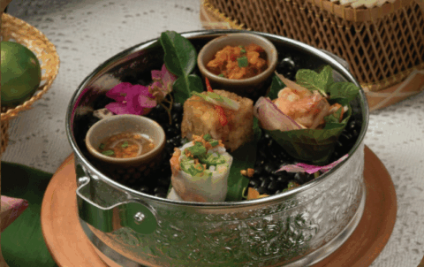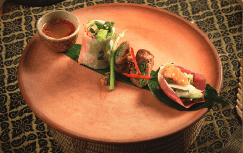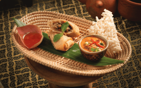 ប្រហិតត្រីរុំបន្លែ Deep-fried fish cake rolled with vegetable ញុាំត្រយ៉ូងចេកសាច់មាន់...