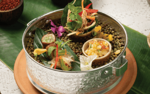 សាច់គោចង្កាក់ Grilled beef skewer with pickle ញុាំស្វាយត្រីឆ្អើរ...
